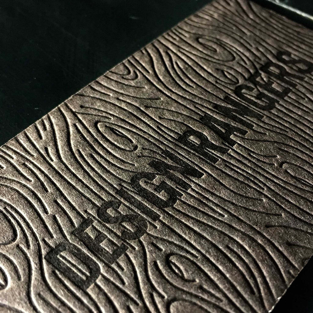 Taking advantage of the deep impression only letterpress printing can create, a faux wood texture was achieved. The business cards were then duplexed and detailed with a rubber stamp treatment to give a true park ranger feel.