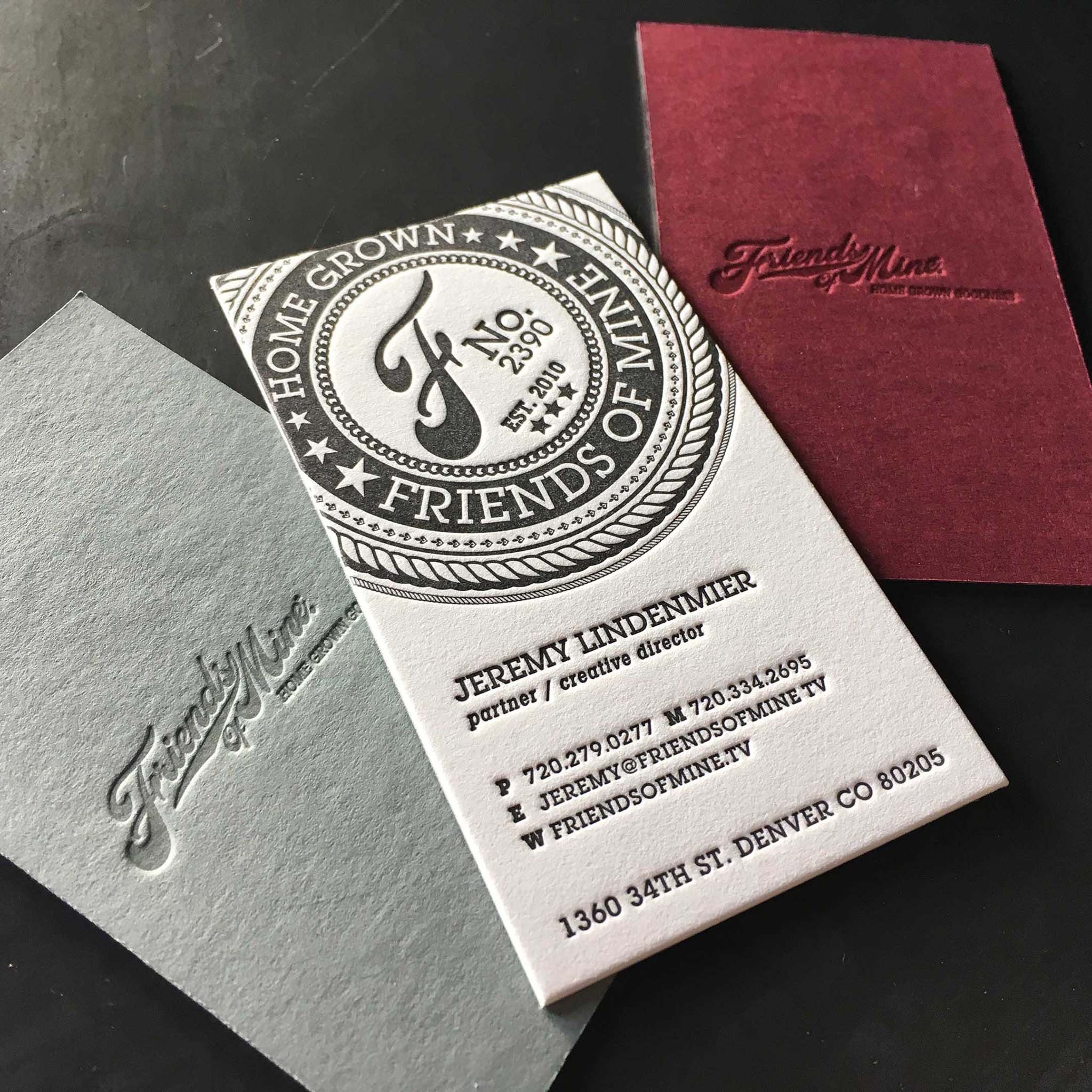 Gloss varnish was used in place of a blind letterpress impression to give better legibility to the smaller type in the logo. Two different color papers were duplexed to the back of the business cards.