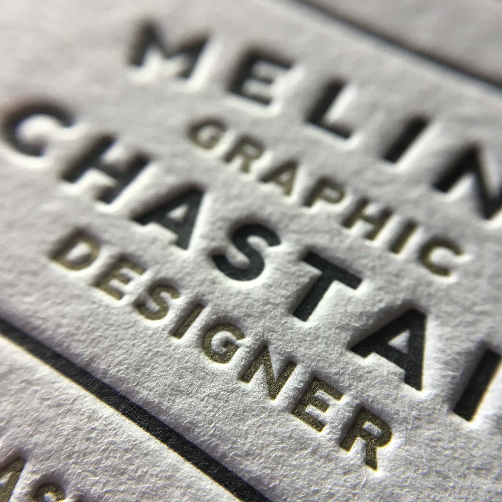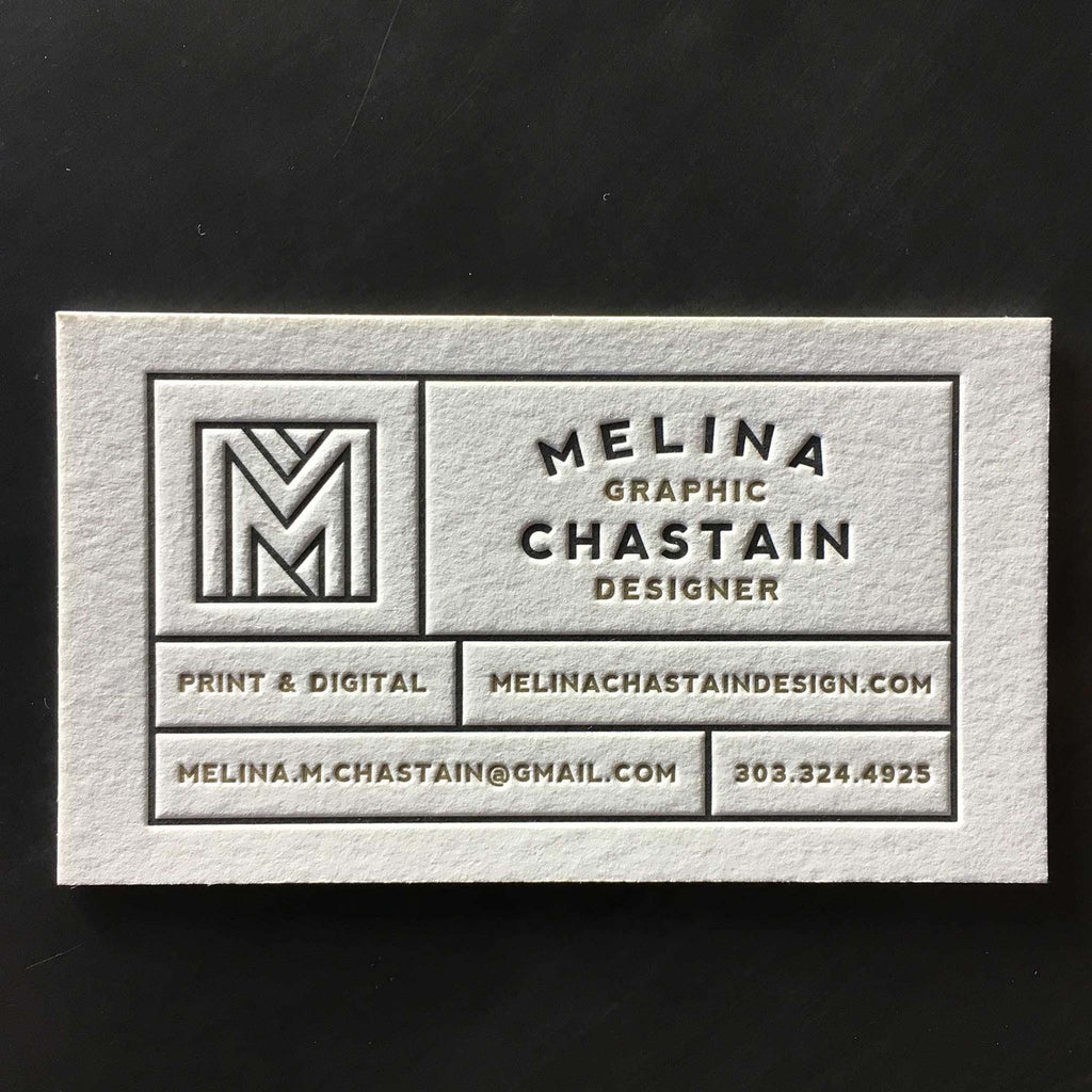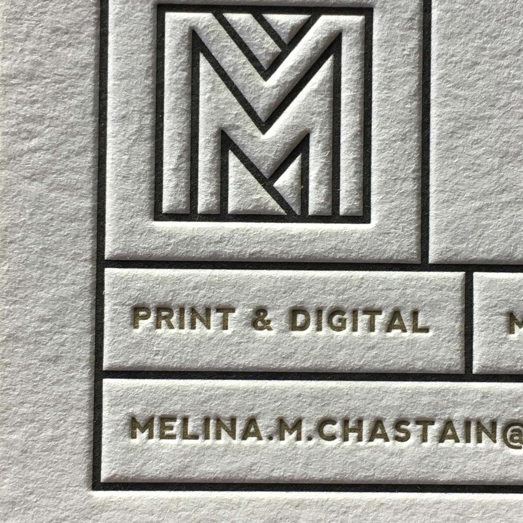 A printed grid system using thick Black Lines and contrasting Black and Metallic Gold Ink for the contact information really put to good use the printing process of letterpress giving a nice, deep impression.