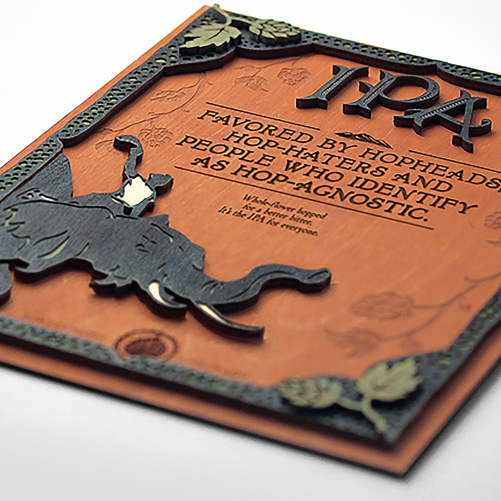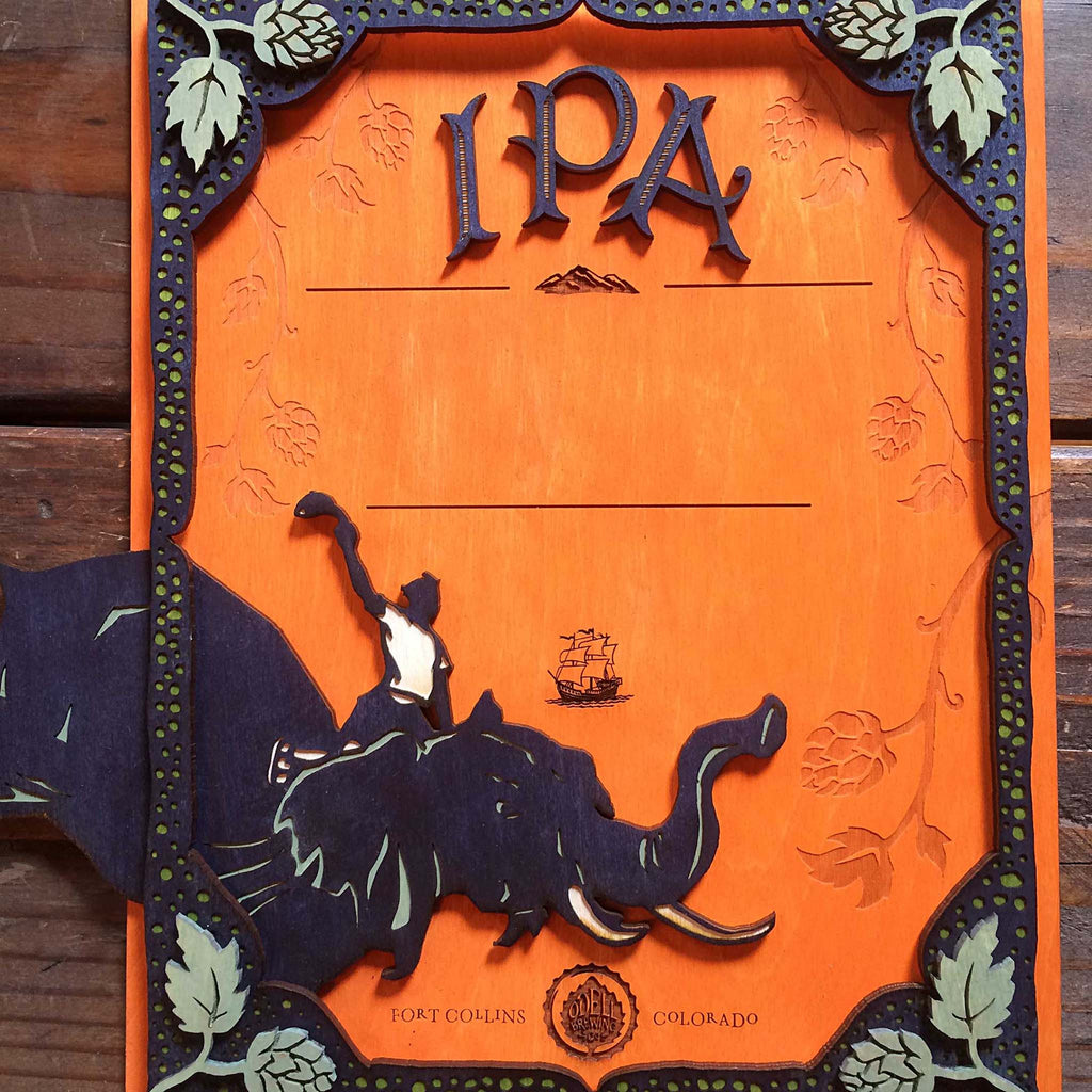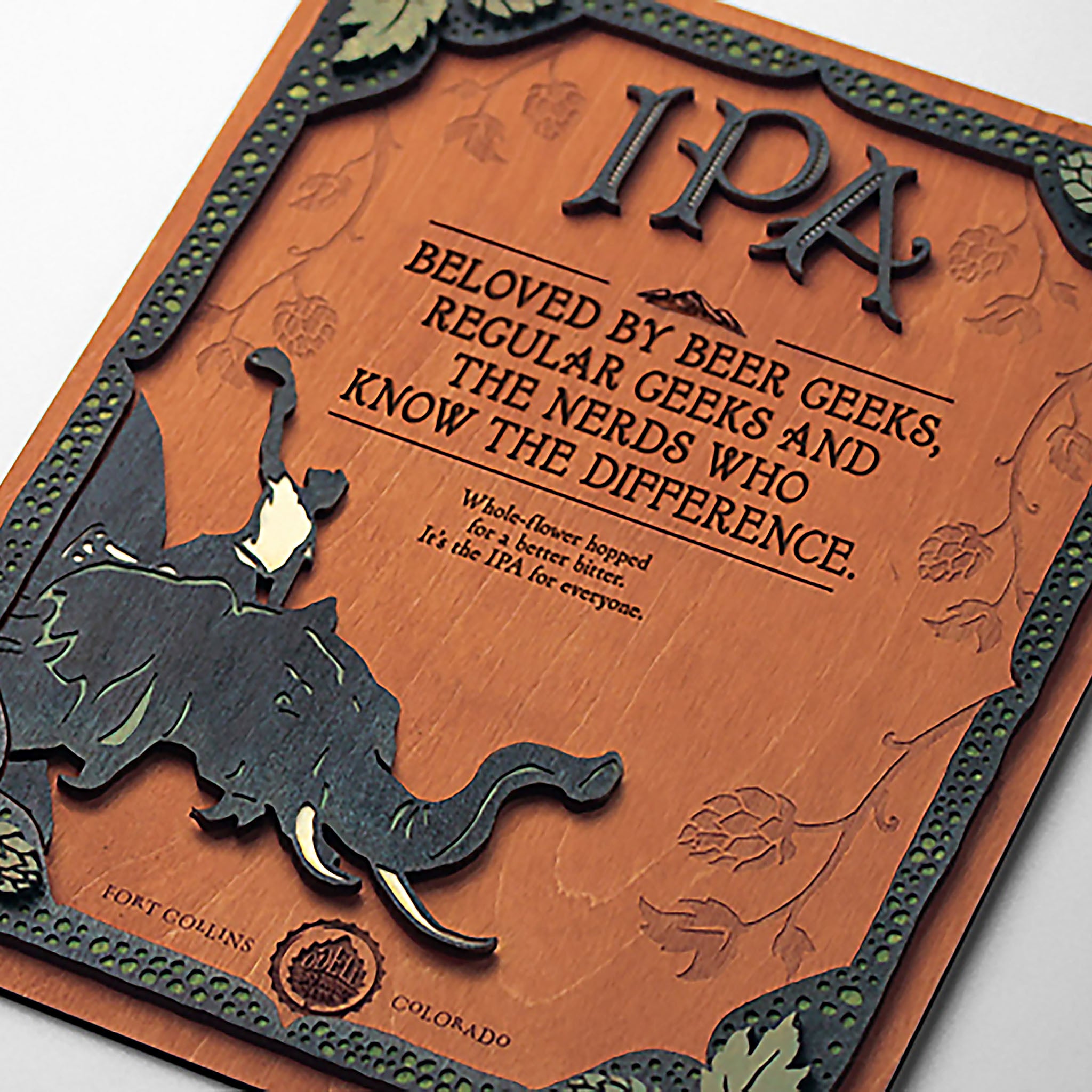 A 3-Dimensional Advertisement for Odell Brewing using multiple layers of stained wood that was laser cut and laser engraved with several different messages giving a unique, one-of-a-kind handmade feel.